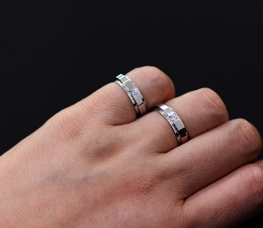 남자 반지 5 mm , 여자 반지 약 5 mm 정도의 폭으로 되어진 디자인
